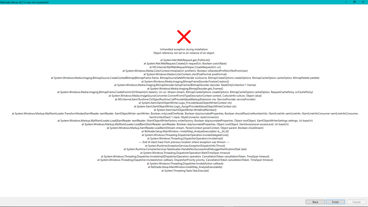 It appears the .NET Framework configuration on your system is completely broken. It's not able to find the "webRequestModules" section in the .NET Framework machine.config. This is not a ReShade setup issue, it's an issue with your system. You could try repairing with